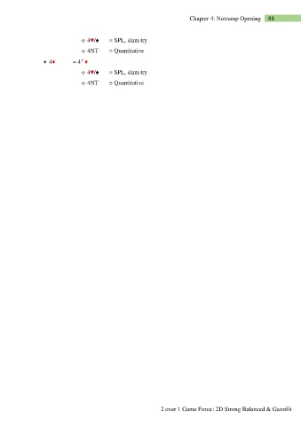 Chapter 4: Notrump Opening 88 o 4♥/♠ = SPL, slam try o 4NT = Quantitative • 4♦ = 4⁺ ♦ o 4♥/♠ = SPL, slam try o 4NT = Quantitative 2 over 1 Game Force | 2D Strong Balanced & Gazzilli