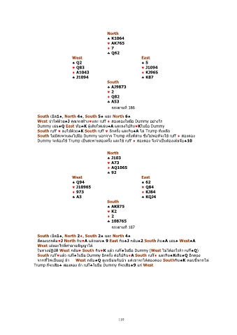 South ไมมีสะพานลงไปมือ Dummy นอกจาก Trump ครังทีสาม ซึงไมพอทีจะใช ruff ♦ สองตอง