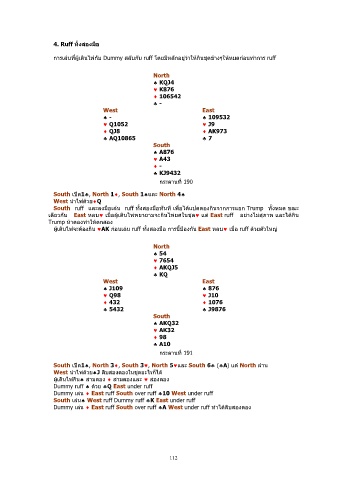 การเลนทีผูเดินไพกบ Dummy สลับกน ruff โดยมหลักอยูวาใหกนชุดขางๆใหหมดกอนทําการ ruff