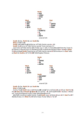ผูเดินไพมการเลนทีเหมาะสมคือ Dummy กน♣A South หลบ♥ ตอไปเลน♦A และ♦2 ถา East กน♦K ก ็