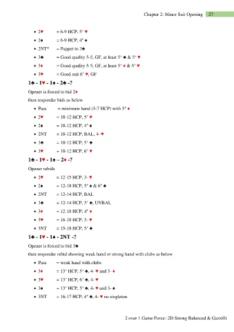 • 2NT = 10-12 HCP, BAL, 4- ♥