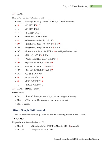 • DBL; 1L = Negative double, 6 HCP, 4-M or 4-4 M (if 1♦ overcall)