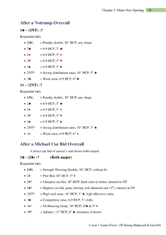 • 3♦* = Fit Showing Jump; 10 HCP, 4 ♣ & 5 ♦