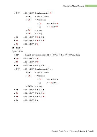 • 2♣* = Gazzilli Convention; either 12-16 HCP w/ 4 ♣ or 17 HCP any shape