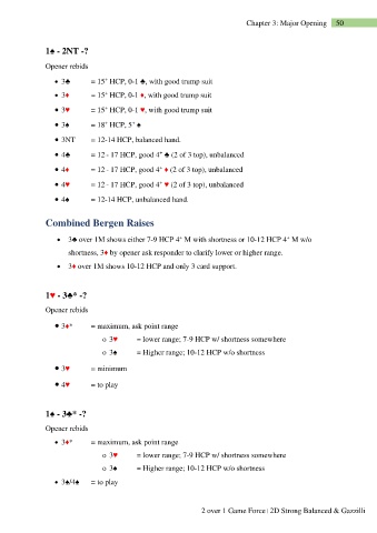 • 3♣ over 1M shows either 7-9 HCP 4 M with shortness or 10-12 HCP 4 M w/o