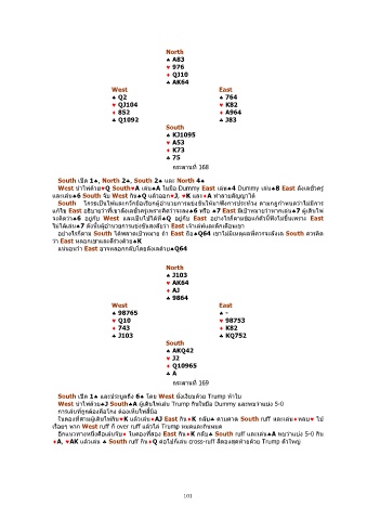 และเลน♠6 South จับ West กน♠Q แลวออก♥J, ♥K และ♦A ทําลายสัญญาได