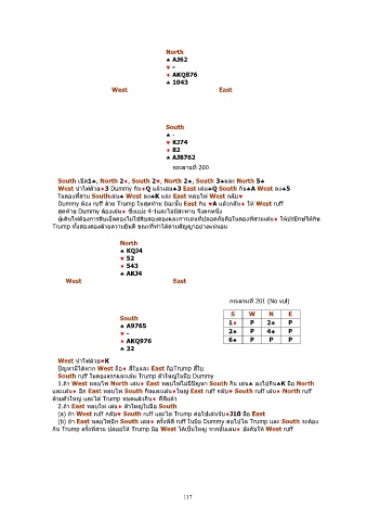 (b) ถา East หลบไพอก South เลน♦ ครังทีสี ruff ในมือ Dummy ตอไปไล Trump และ South จะตอง