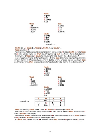 กลับ♥ มาอก แลวเลน Trump เล็ก West เลน♠10 Dummy ♠J East กิน♠A กลับ♣ กิน♣A ในมือ Dummy