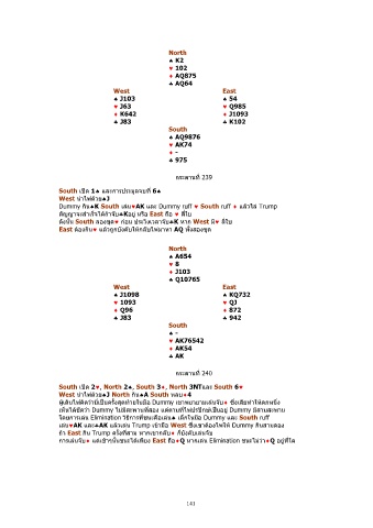 Dummy กน♠K South เลน♥AK และ Dummy ruff ♥ South ruff ♦ แลวไล Trump