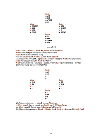 ตอไป Dummy กน♠A และเลน♥6 East ♥J South ทับ♥Q West กน♥A และออกให South กน♥9