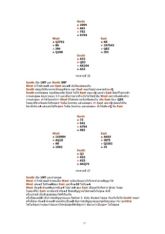 ในตองทีหา East จะกลับ♥J หรือ♣J ซึงสงสัญญาณไดสามครังในชุด♠ ดังน ้ ี