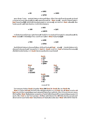 East ถือสองใบ♠109 ดังนนจึงขนไปบนมือดวยชุดขางๆ แลวเลน♠Q เพราะเขาใจวา East เหลือ♠10 เพยง