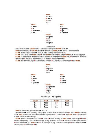 South เลน♣X ไป Ruff West หลบ♥6 และ South ขนมาดวย♥A แตถูก West Ruff ทําลายสัญญาได