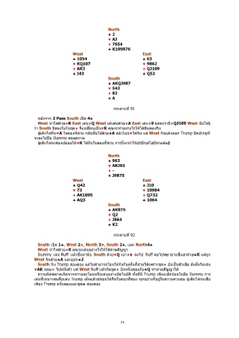Dummy เลน Ruff แลวขนมามือ South ดวย♥Q เอา♦x ลงไป Ruff ตอไปพยายามขึนมาดวย♣K แตถูก