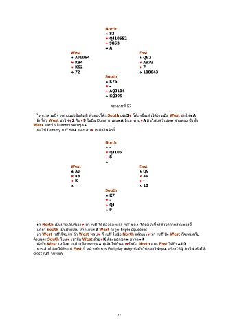 ดวยและ South โยน♦ เขามือ West ดวย♦K ตองออกชุด♠ มาหา♠K