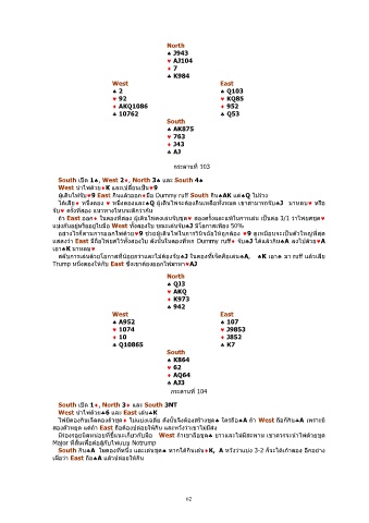 ผูเดินไพจับ♥9 East กนแลวออก♦มอ Dummy ruff South กน♠AK แต♠Q ไมรวง