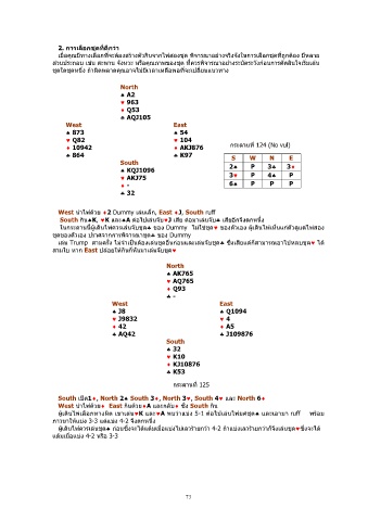 South เปด1♦, North 2♠ South 3♦, North 3♥, South 4♥ และ North 6♦
