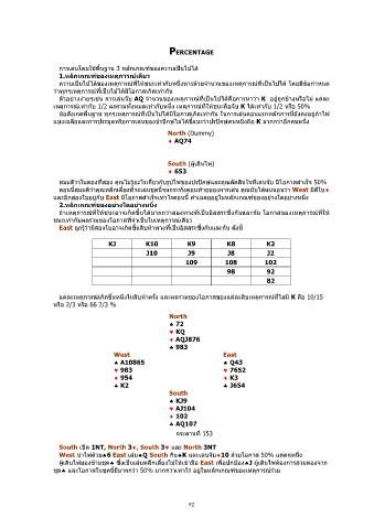 West นาไพดวย♠6 East เลน♠Q South กน♠K และเลนจับ♦10 ดวยโอกาส 50% แตตกหนึง